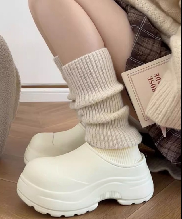 可愛い厚底ブーツ 軽量 レディース おしゃれ レインシューズ 裏ボア 暖かい冬靴 保温レインブーツ 黒 歩きやすい 防寒スリッポン韓国美脚 アンクルブーツ軽い 滑り止め長靴 暖か寒い季節もおしゃれを妥協しない方性にぴったりのEVAショートブーツ約5cmのヒール高はありながら軽いEVA素材を使用、長時間のご使用でも足が疲れにくい裏ボアで冷たい風や寒さから足をしっかり守るソックス風のデザインが足首を可愛らしく演出し、おしゃれ度をアップEVAの一体成型なのでレインとしては勿論、庭先やアウトドアなど幅広い用途でご使用頂ける素材:合成樹脂+ポリエステルカラー:ブラック/アイボリー/ホットピンクサイズ:S(36-37)/M(38-39)/L(40-41)(カッコ内は靴底表記となります)※少し小さめの作りなので、対応サイズご参照の上ご購入ください。 [S]-対応サイズ:225/230外寸長:約26.0cm 内寸長:約23.0cm 幅:約11.5cm ヒール:約5.0cm[M]-対応サイズ:235/240外寸長:約27.0cm 内寸長:約24.0cm 幅:約12.0cm ヒール:約5.0cm[L]-対応サイズ:245/250外寸長:約28.0cm 内寸長:約25.0cm 幅:約12.5cm ヒール:約5.0cm重さ(両足):約280g-302g生産国:中国※すべて平置きサイズです(採寸方法違いより、多少の誤差がございますので、ご了承ください)。 ※海外輸入品のため、商品の細部仕様は多少異なる場合がございます。 予めご了承の上、ご注文お願い致します。 【発送予定日】 翌営業日