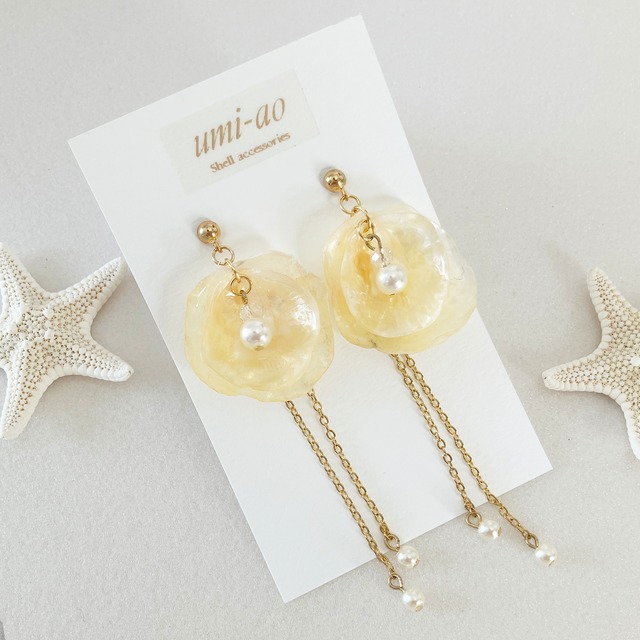 パステルクリーム*パール×シェルのロングチェーンピアス