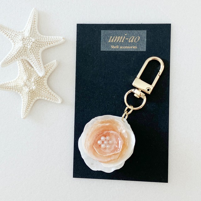 シェルローズ×パール*天然貝の上品キーホルダー(約7.5cm)