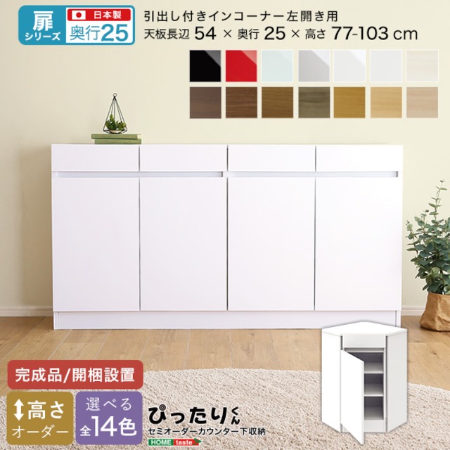 【扉シリーズ】セミオーダーカウンター下収納ぴったりくん 引出し付きインコーナー左開き 奥行25cm