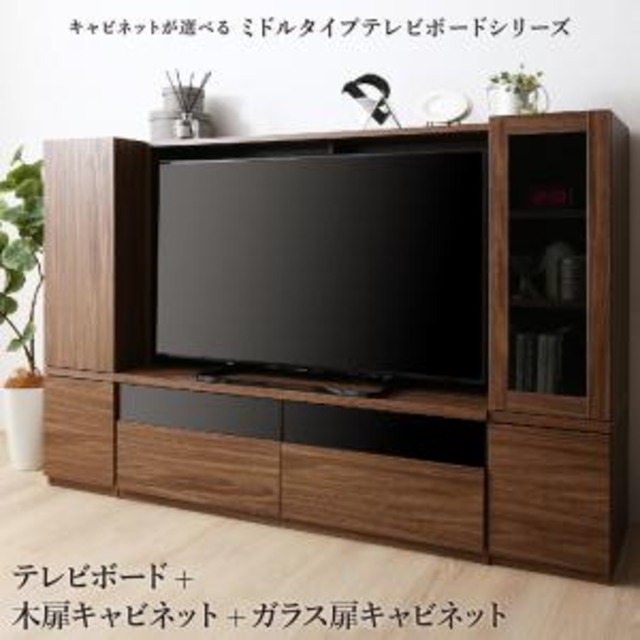 ミドルタイプテレビボードシリーズ 3点セット(テレビボード+キャビネット×2) 木扉&ガラス扉