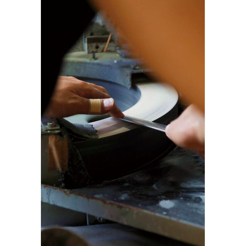 黒を基調としたソリッドなデザイン。ヒップアップハンドルの包丁は力がかかり易く、女性でも楽に押し切りができます。手に馴染みやすく滑りにくいラバーグリップを採用。