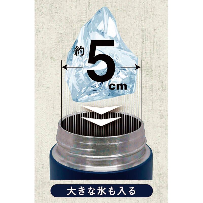 真空構造でおいしい飲み頃長持ち!大きな氷もラクラク入る大口径。氷ストッパー付。・保温効力/6時間:62℃以上・保冷効力/6時間:10℃以下