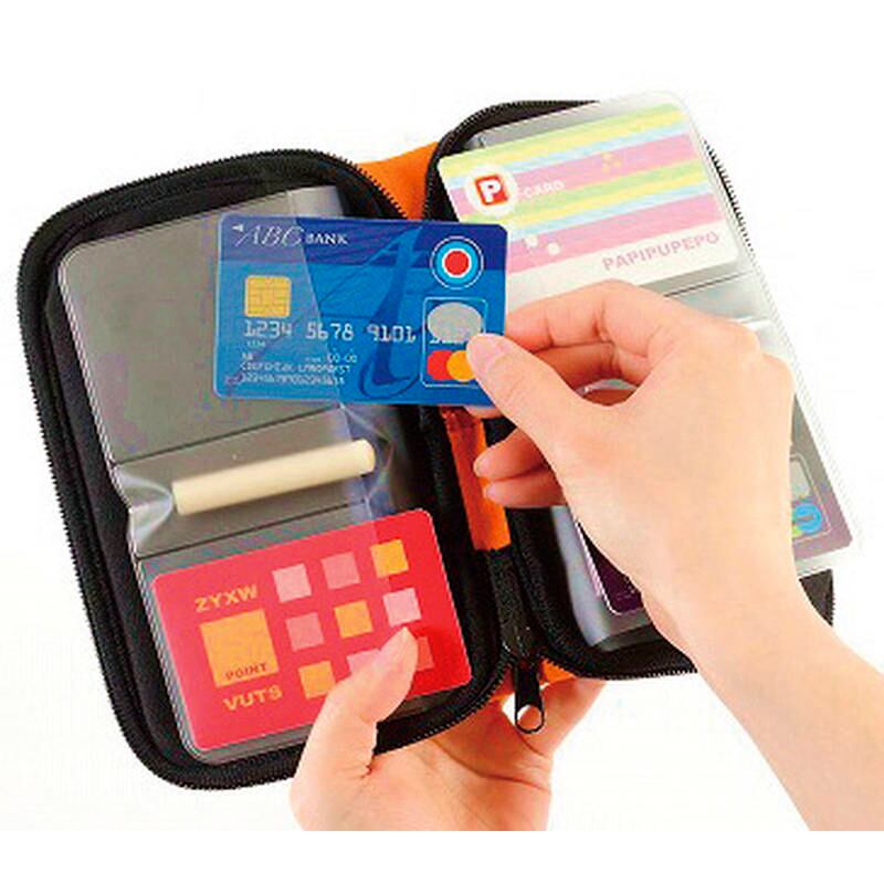 カード・通帳・印鑑などを仕分けしてコンパクトに収納できます。パスポートも収納可能。