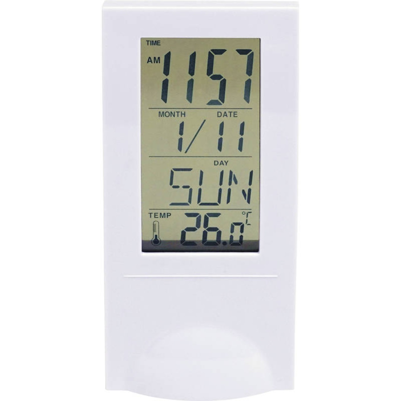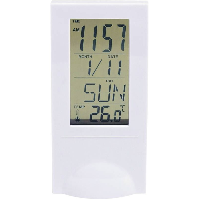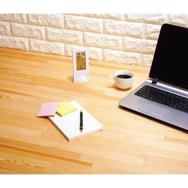 時刻が浮いて見える?!ちょっと不思議なシースルーディスプレイ置時計。背面のボタンで時間やアラームをセット。