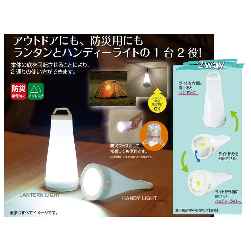 アウトドアにも、防災用にも便利なランタンとハンディーライトの1台2役のライト。