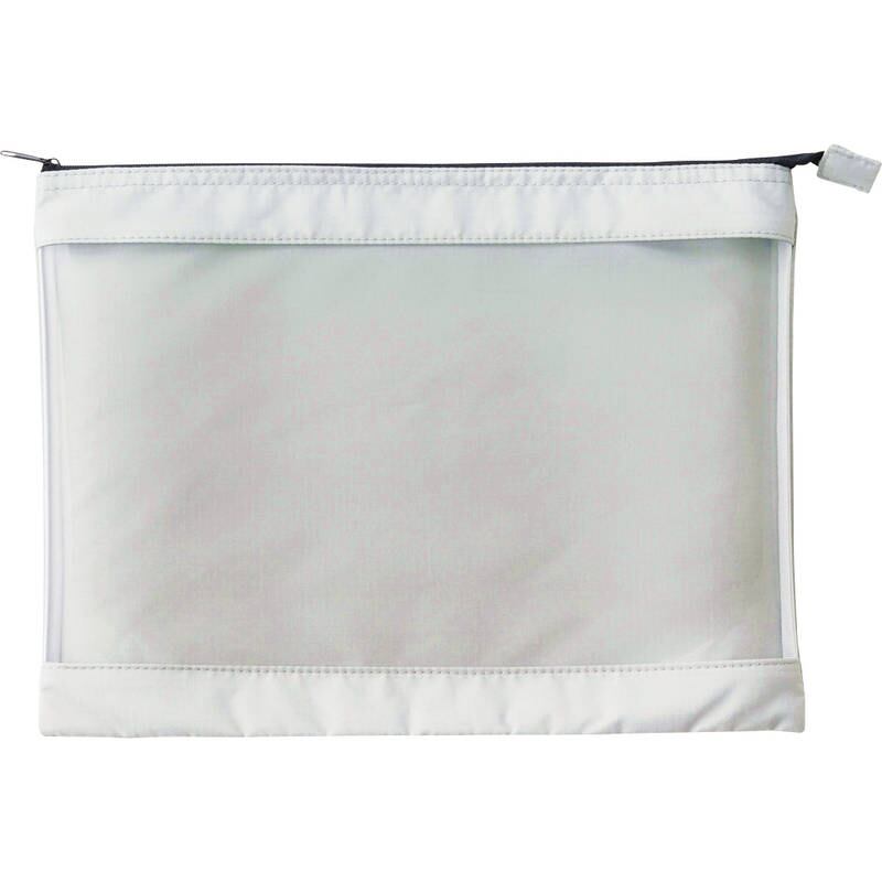 テントにも採用される丈夫でしなやかな生地を使用したA4ポーチ。表面はクリア素材で中が見えるため、必要な物がさっと取り出せます。生地には撥水加工を施してあります。