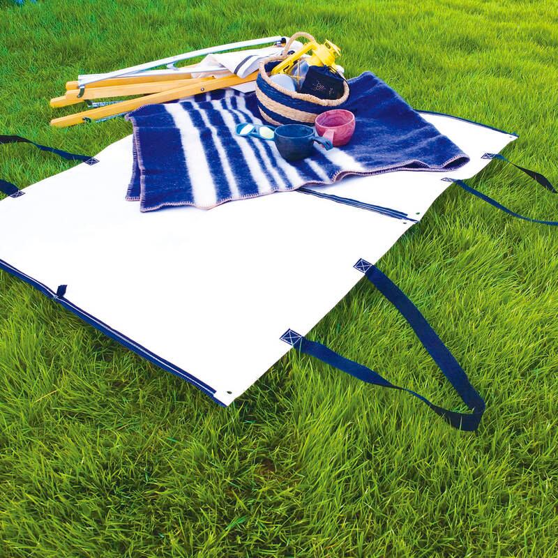 たっぷり収納できる大きなバッグ。両サイドのファスナーを開けば長い物も運べます。一人用レジャーシートとしても使えます。・ハトメ付