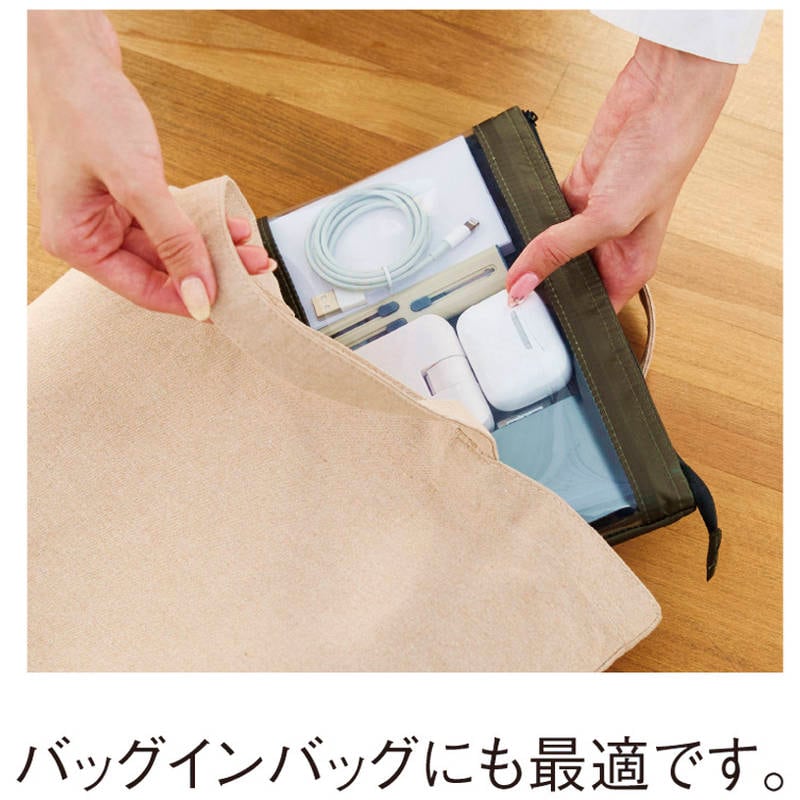 タフでしなやかなテント素材と、視認性に優れたクリアポーチが融合。物が入れやすいワイドオープンタイプのファスナーを採用。