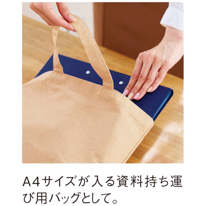 底面のボタンで形状が変えられる、再生素材100%の2wayキャンバストート。再生コットン70%と再生ポリエステル30%を配合した、再生素材100%の生地を使用。