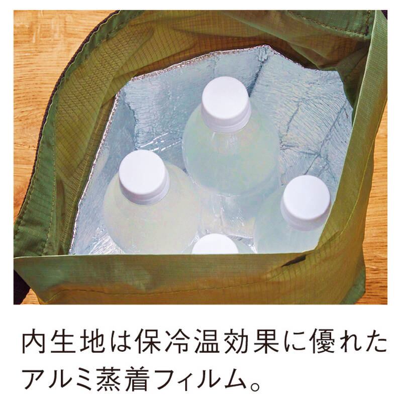 くるくる巻いて、カチッと留めるだけ!お弁当やペットボトルなど、中身に合わせて自由に高さ調節が可能。外生地はテントにも採用される、丈夫でしなやかな生地。雨や汚れを弾く撥水加工済。内生地は保冷温効果に優れたアルミ蒸着フィルム加工。