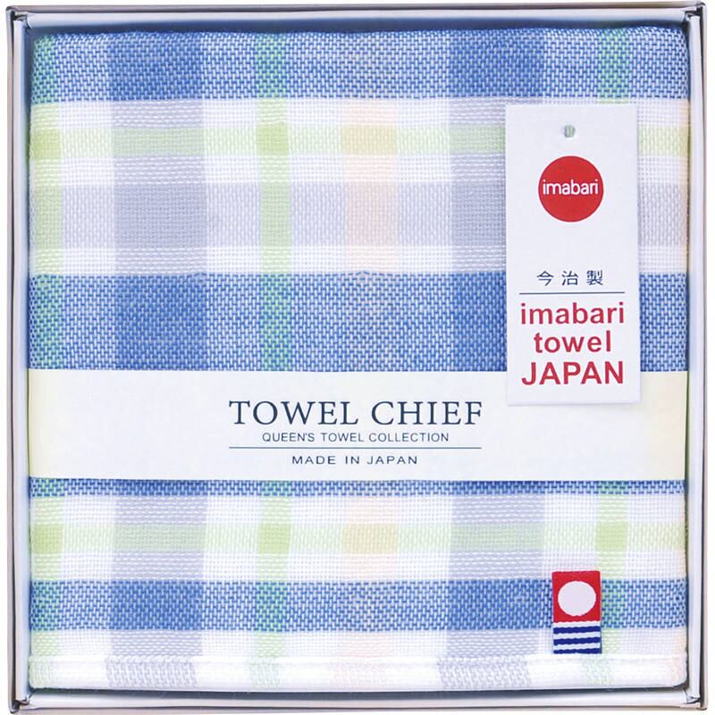今治ガーゼ&パイルタオルハンカチチェック1P TQS0602101B ブルー