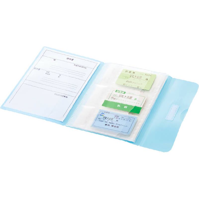 ・カードポケット2枚(8枚収納)、お薬手帳ポケット1枚、フタ付き多目的ポケット1枚付き通院に必要なものが、これ一冊にまとまります。医療領収書や薬剤情報提供書の一時保管にも使えます。