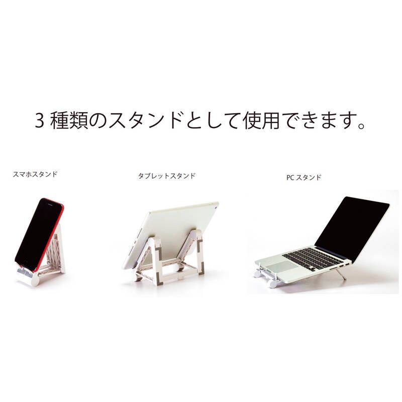 様々な形に変形して、スマホ、タブレット、PCのスタンドとして使えます。コンパクトにおりたためるので携帯、収納に便利です。麦わら繊維配合でプラスチックの使用量を削減。