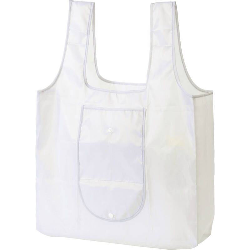 折りたたみが簡単な大き目ショルダータイプのエコバッグ。収納フラップ部は使用時ポケットにもなる便利機能。レジ袋の削減に。