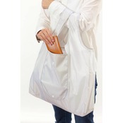 折りたたみが簡単な大き目ショルダータイプのエコバッグ。収納フラップ部は使用時ポケットにもなる便利機能。レジ袋の削減に。