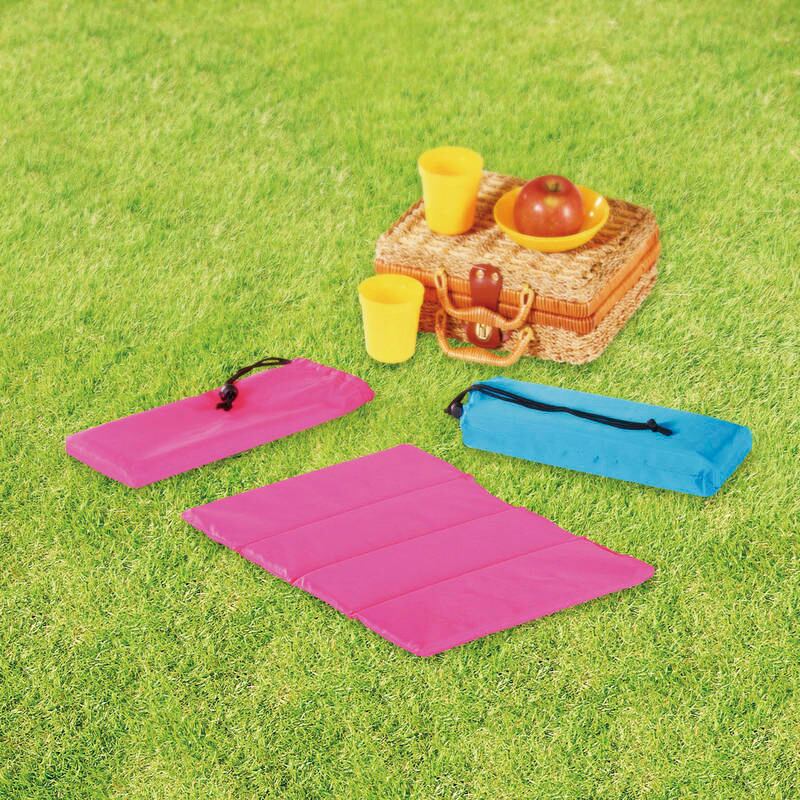 ピクニックやスポーツ観戦に。巾着付きで持ち運びに便利なクッションシート。