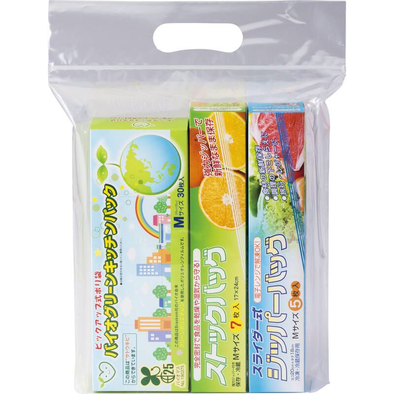 キッチン周りで便利な3点セット。もらってうれしいボリュームのあるセット。そのまま持ち帰れるので便利。チャック付きなので雨などでも中身は安心。チラシなどの封入もできます。