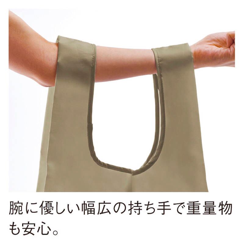 環境に優しい再生PETを使用。シワになりづらい柔らかな素材感で、丸洗い可能です。内ポケットに小さく折りたためます。