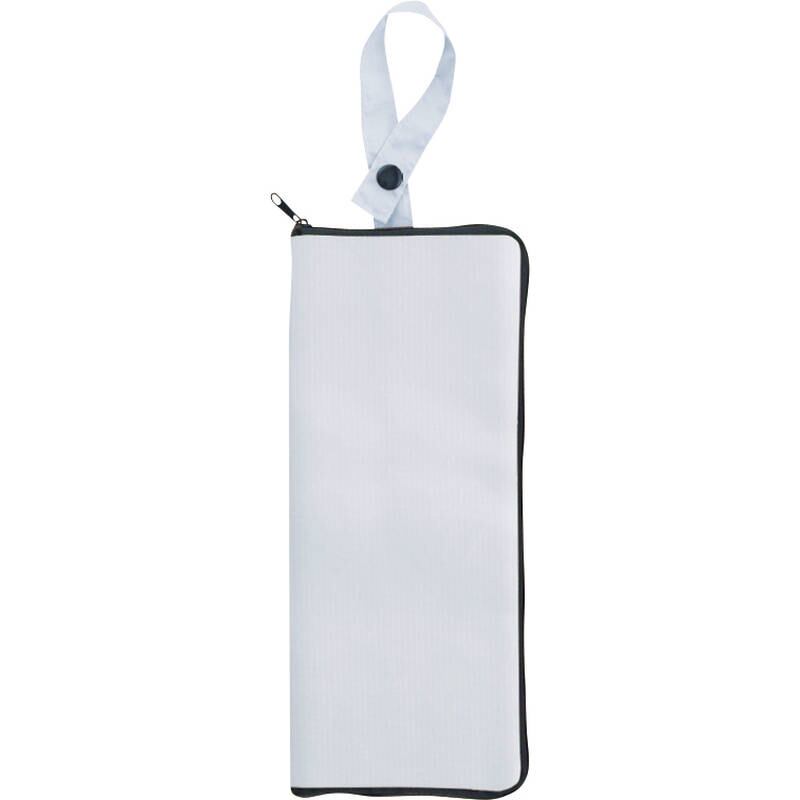 マイクロファイバーが濡れた傘の水滴をしっかり吸水!カバンの中の書類や荷物を、水滴から守ります。便利なボタン式ストラップ付きです。