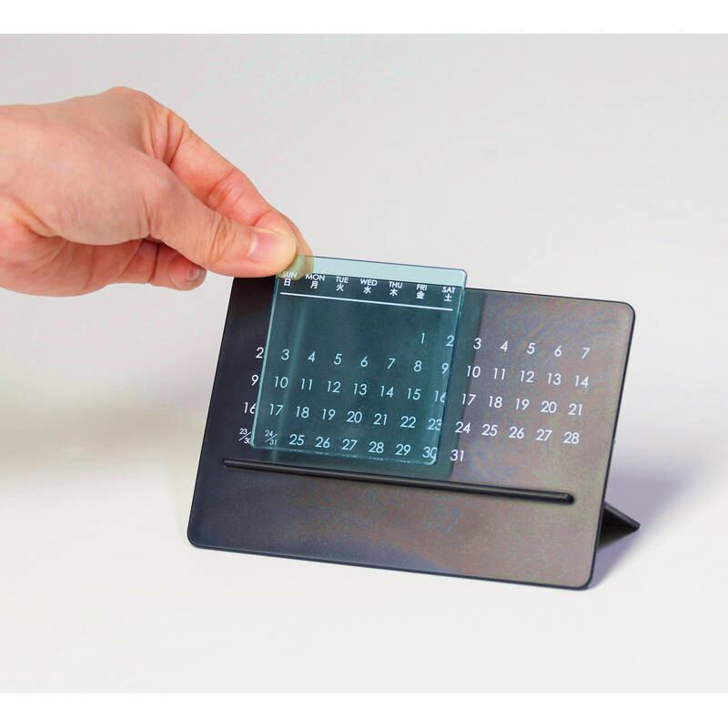組み立て簡単ないつまでも使える万年カレンダー。付属の曜日用プレートをスライドさせれば何年先でも使用可能。