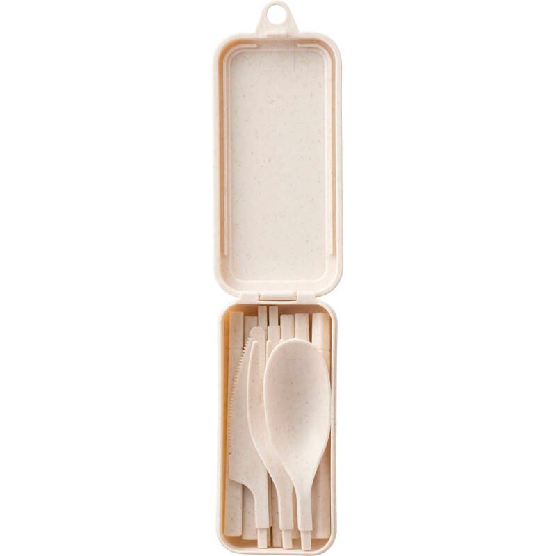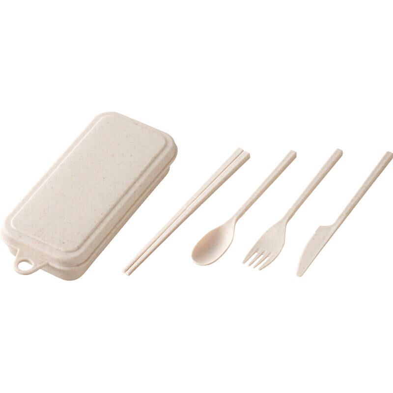 麦わらで作られた組み立て式のカトラリーセット。麦わら配合バイオマスプラ/麦は大量に生産・消費される穀物であり、その副産物である麦わらを利用することで合成樹脂の使用量を削減し、農業廃棄物も減らすことができます。