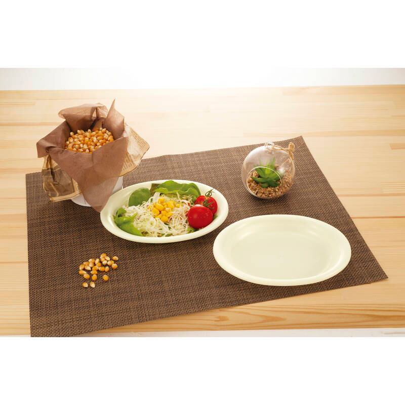 石油使用量を減らし、とうもろこし澱粉を代替素材に使用したバイオマス配合プラスチックです。雑菌の繁殖を抑える安心の抗菌プレートです。