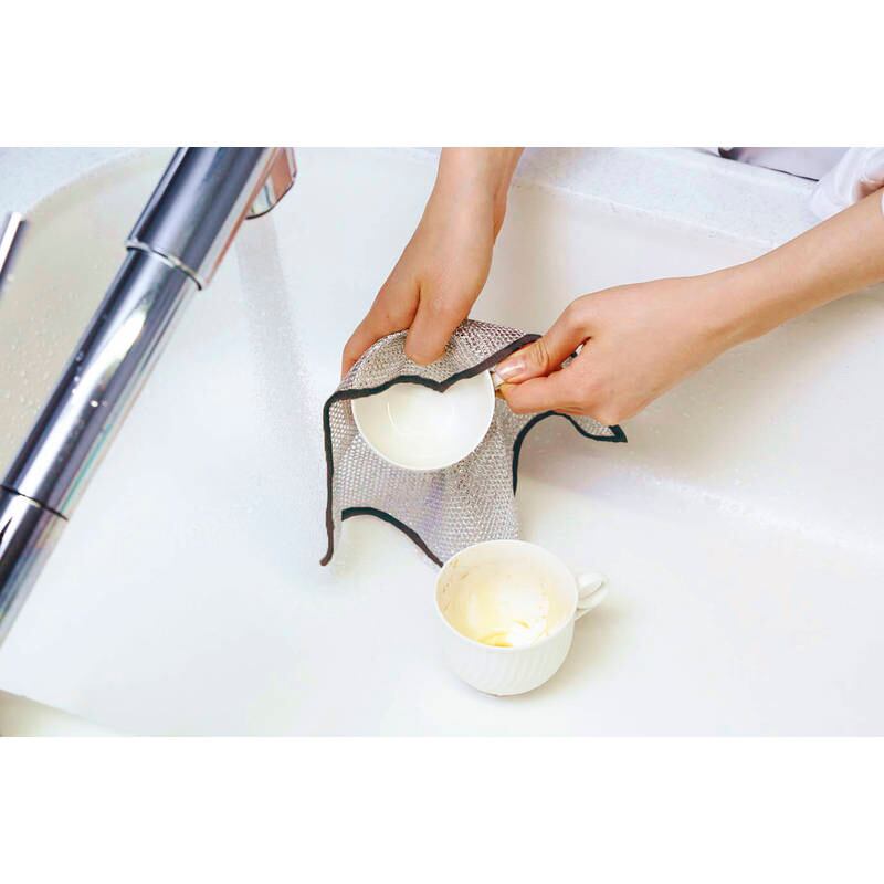 キズをつけずにプラスチック・ステンレス・ホーロー・テフロン加工品・ガラス・アルミ・タイル等頑固な汚れをきれいに落とせます。