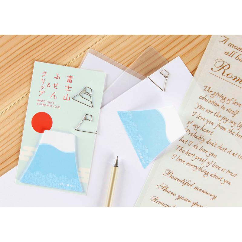 富士山をかたどった付箋とクリップのセット。めでたいシーンや訪日外国人向けアイテムに