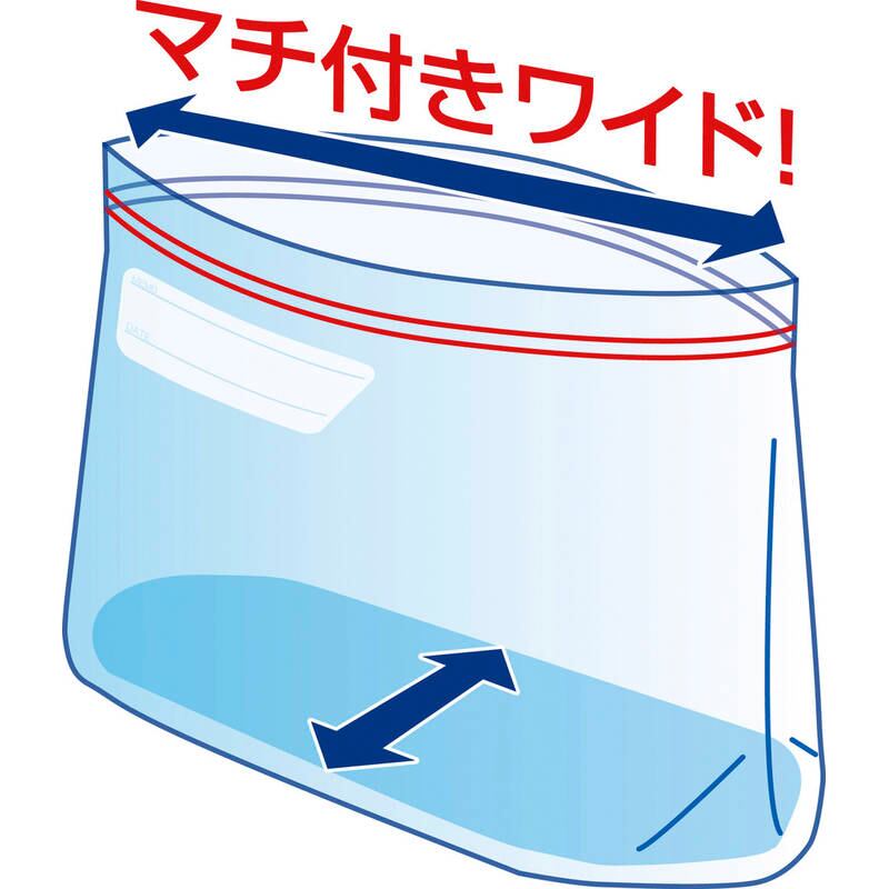 マチ付きで立てて保存ができ、冷蔵庫内がスッキリ!Wチャックで密封性バツグン!バリバリ音と感覚で密封確認が簡単にできる!レッドとブルーのカラージッパー採用で視認性抜群!内容物や保存日が書けるメモスペース付き。