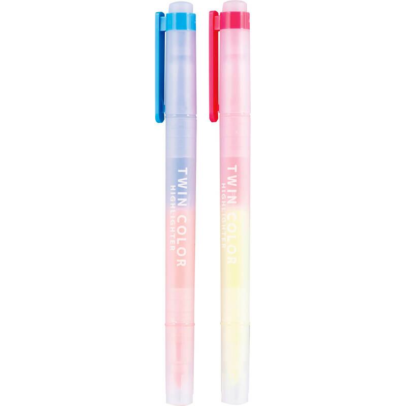 1本で2色使える蛍光ペンの2本セットです。・青/橙、桃/黄