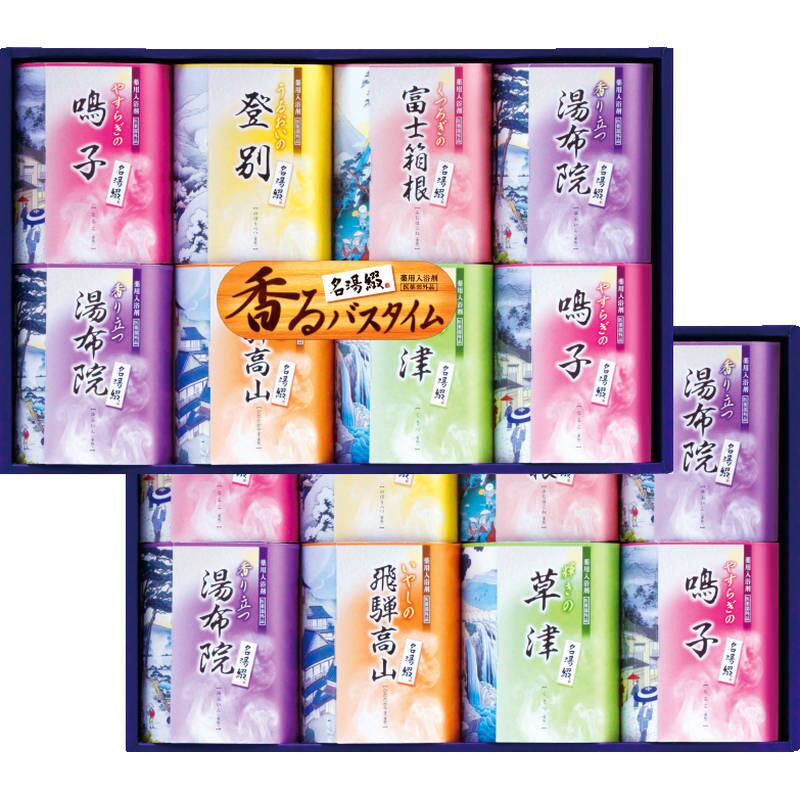 幅広い層に人気の名湯・秘湯をモチーフにした薬用入浴剤です。保湿成分(ケイ酸ナトリウム)配合でお肌しっとり、おだやかな香り立ちのぼるギフトセットです。