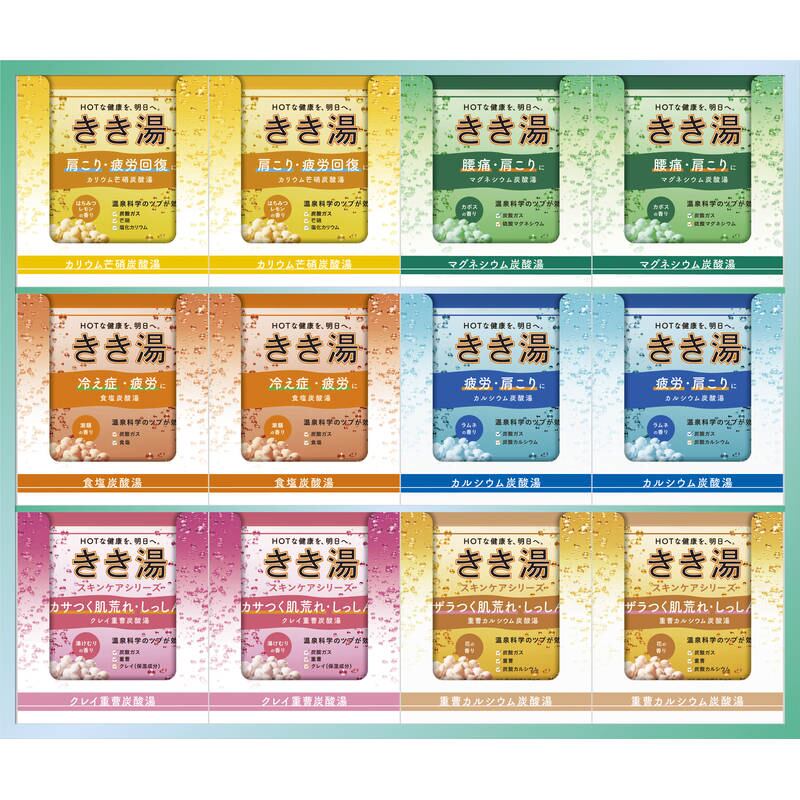温泉ミネラル+炭酸ガスの温浴効果で、1日の終わりにからだケア。翌日の症状を和らげる新・入浴習慣「きき湯」。温泉科学プロジェクトから開発された「きき湯」の入浴ギフトセットです。