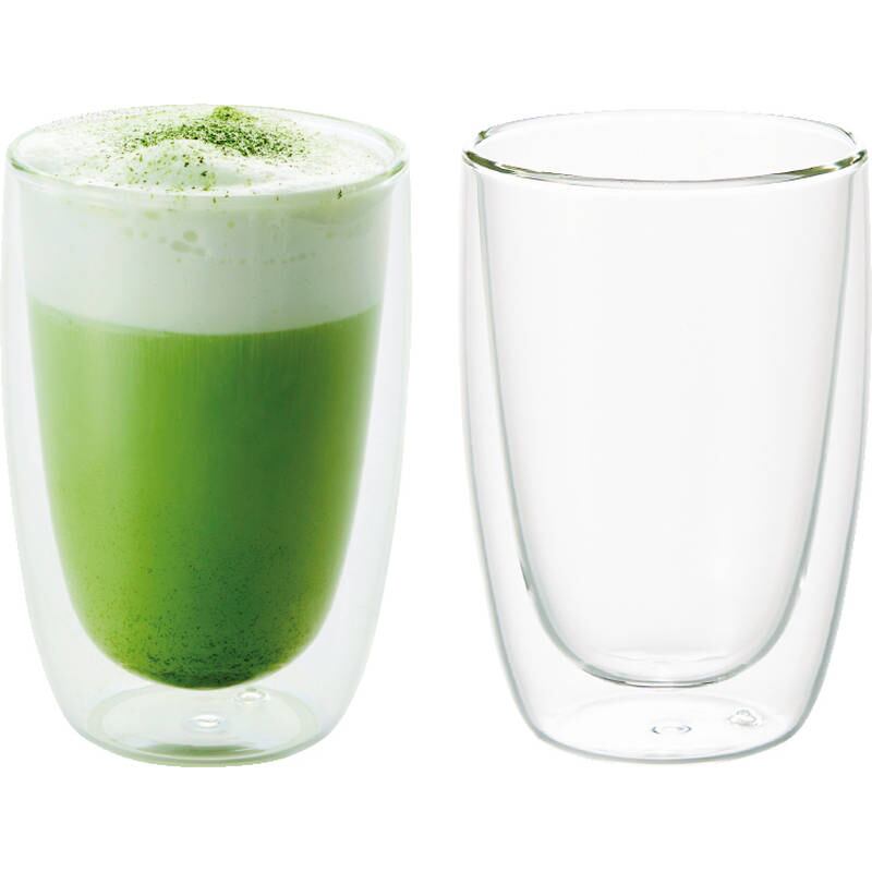 飲み物が浮かんで見える二重構造のグラス。耐熱ガラスなのでホットにもコールドにも使えて機能的です。