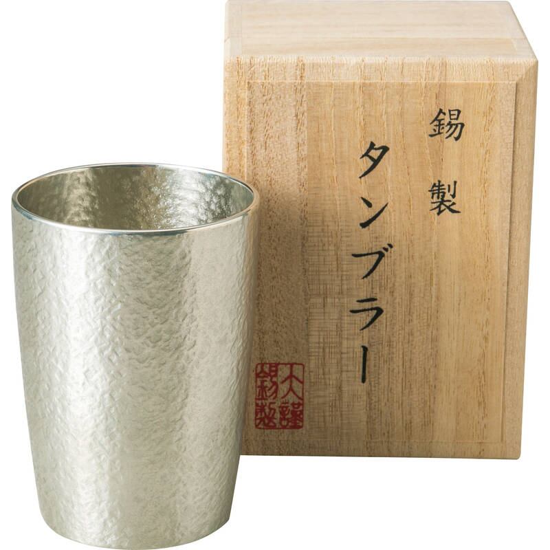 経済産業大臣指定の伝統工芸品「大阪浪華錫器」 錫は水を浄化する性質があるので飲み物をさらに美味しくまろやかにします。 波のような美しい模様が特長です。※冷たい飲み物専用。