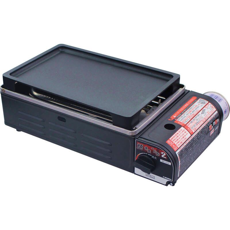 本格炉端焼き(炙り調理)とプレート焼き調理がこれ1台で楽しめます!1台で三役のすぐれ物! 1.焼き網 2.串焼き 3.プレート焼き・カセットボンベ式・簡単便利なマグネット着脱式・最大発熱量:2.3kw(2,000Kcal/h)・連続燃焼時間:約90分・圧力感知安全装置付・圧電点火方式