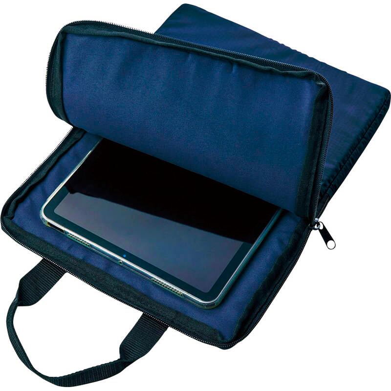 タフなテント生地を用いたタブレットケース(11インチ対応)外生地の撥水性と内生地のクッション性で中身を守ります。中身が出し入れしやすいコの字型ファスナーを採用。クリアファイルが入るポケット付き。