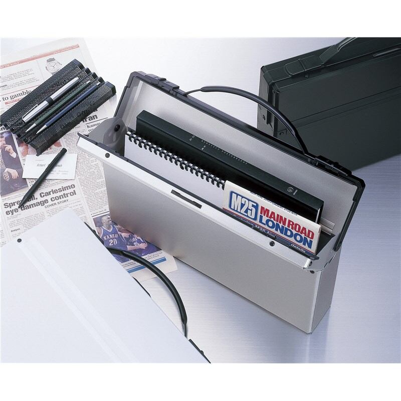 開口部が大きく左右に開くトップインタイプ中の書類がひとめでわかり、書類の出し入れが素早くできます。*最大収納サイズ:縦269×横380×厚さ55mm*耐荷重:約3kg