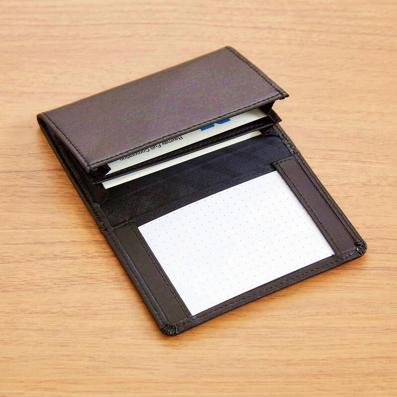 とっさのメモに活躍!名刺整理に便利な2層式ポケット。30枚収納可能。