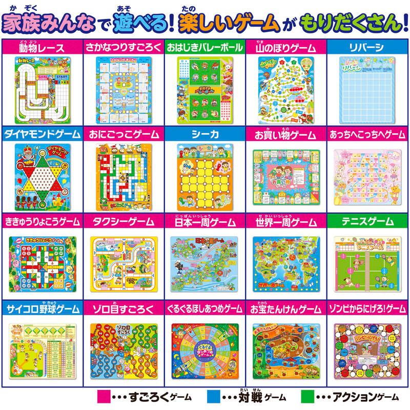 2人以上で遊べるすごろくゲームを中心としたボードゲームセット。小さなお子さんも理解しやすいゲームが20種類も入ったボリューム満点の内容です。