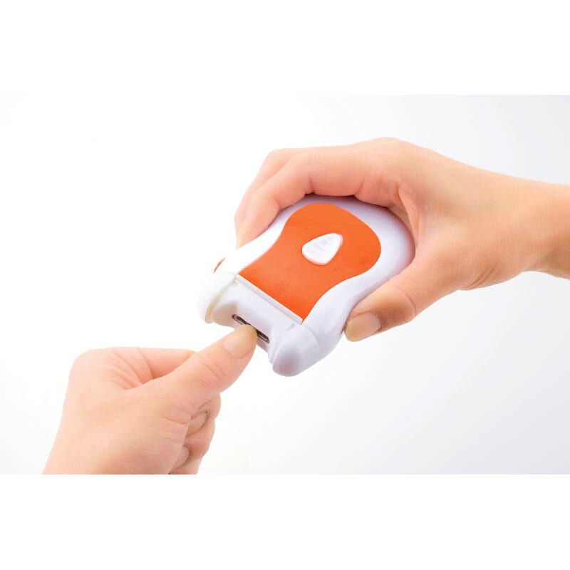 電動だから簡単に爪やかかとが削れます。爪を押し当てて削るので、皮膚に触れても大丈夫です。ヘッド部分を取り外しできるので、水洗いできます。