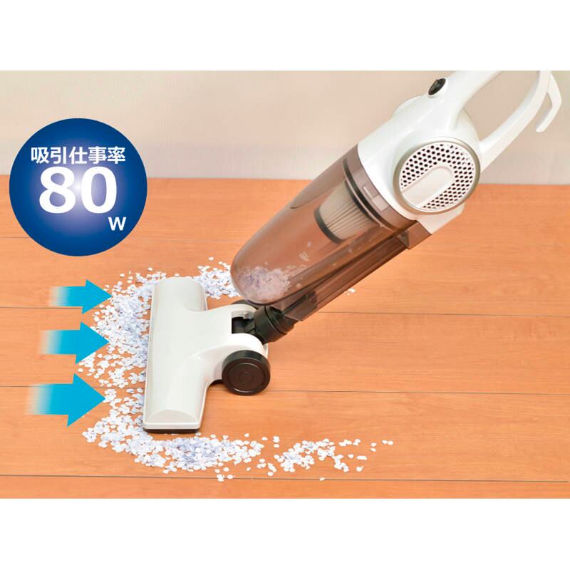ハンディ&スティックの2WAY仕様。コンセントタイプなので、抜群の吸引力で充電残量を気にせずしっかりお掃除できます。・自立式ヘッド採用でコンパクトにスッキリ収納できます。・ダストケースとフィルターはまるごと水洗いできます。・吸込仕事率/80W・AC100V-390W
