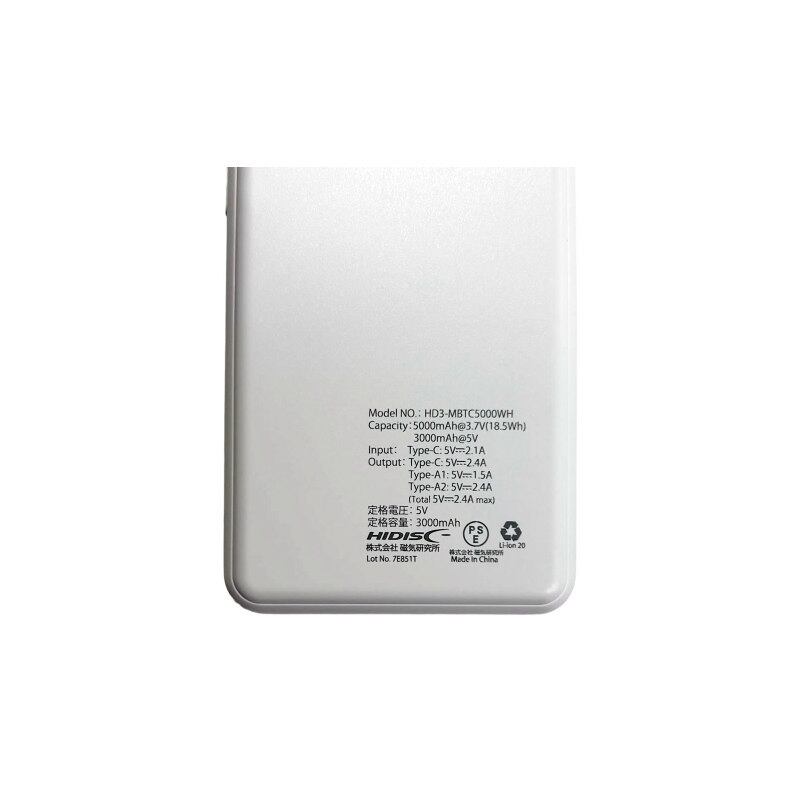 HIDISC Type−C 入出力対応モバイルバッテリー 5000mAh HD3-MBTC5000WH ホワイト(PSEマーク取得済)