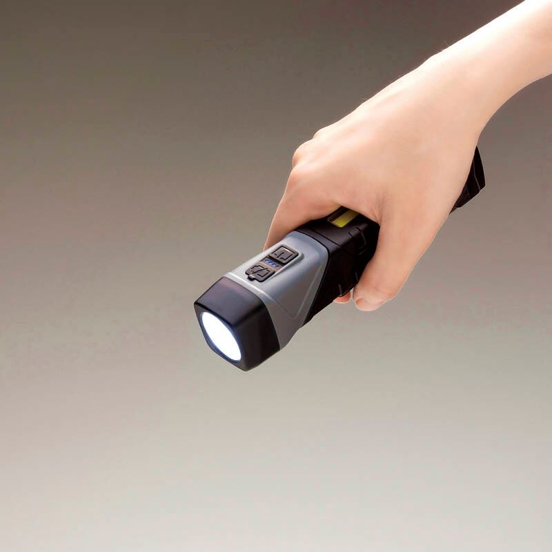 広範囲にわたる明るい照射で、暗闇での作業やアウトドアに最適な多機能ライトです。ヘッド部分が90°回転するので便利!ハンディライト・ハイライト・赤色ライト