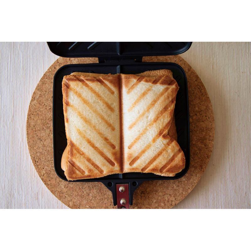 パニーニ風で焼き目がおしゃれなダブルホットサンド!プレートの真ん中に仕切りがあるのでハーフサイズに簡単に切り分けられます。※ガス火専用(IH不可)