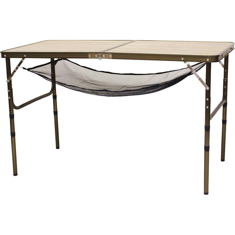 天面は落ち着きのある木目調デザイン。・高さ調整4段階/37cm・47cm・60.5cm・70.5cm・パイプは簡単なワンタッチジョイント式。・天板裏側にジョイントパイプ収納用アタッチメント付き。・耐荷重/約30kg