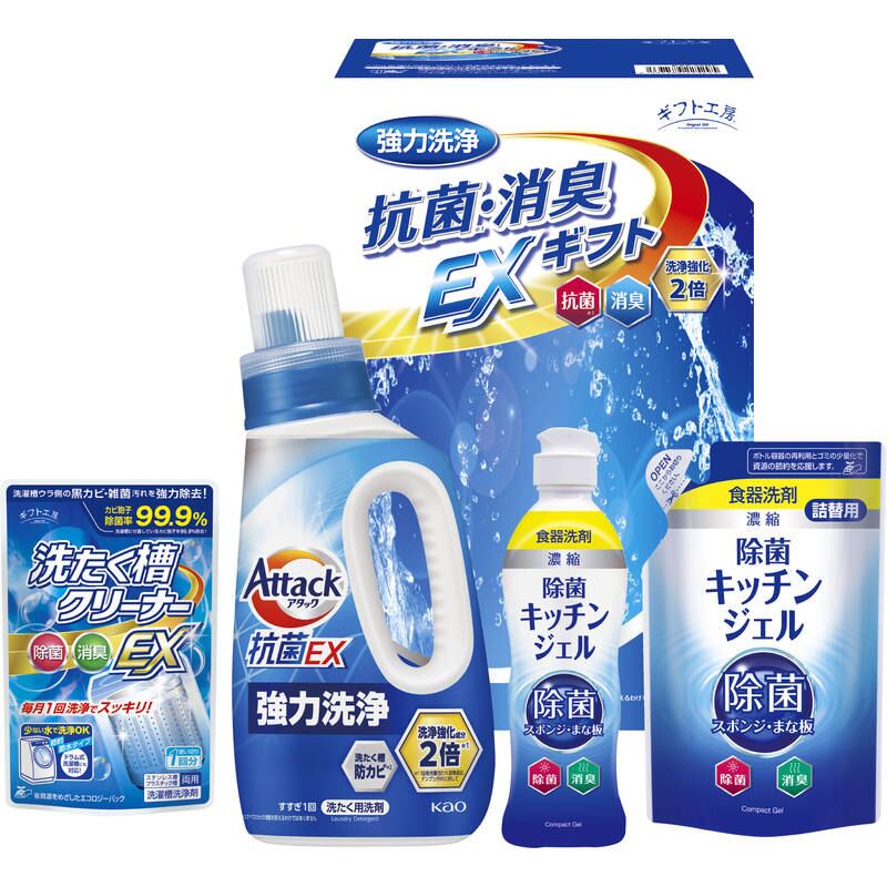 花王アタック抗菌EX つめこみ洗いでも強力洗浄。衣類のすみずみまで浸透抗菌水洗浄技術採用。抗菌・消臭パワーでニオわない快適部屋干し。こだわりの本格消臭ギフトセットです。
