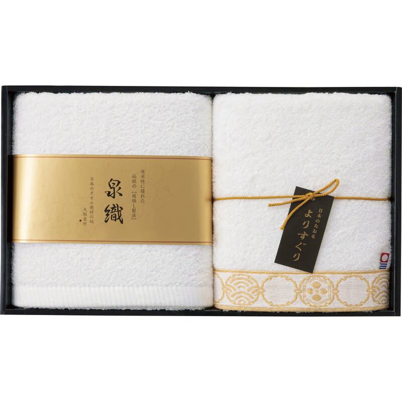 日本のタオル二大産地である愛媛 今治タオルと大阪 泉州タオルをギフトセットにしました。 今治タオル/綿糸の状態で白く晒してかたタオルに織り上げる「先晒し」でふんわりしたタオルに仕上げています。 泉州タオル/タオルを織り上げたのち、糊を落とす「晒す」工程があるため、吸水性に優れた使いやすいタオルです。