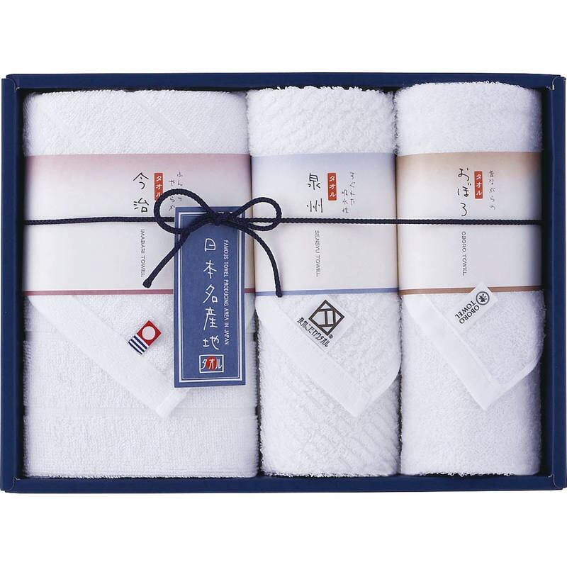 タオルの産地、今治・泉州・三重のタオルセット。ふんわり柔らかい肌触りを追求した今治タオルと、綿本来の優れた吸水性を持つ泉州タオル、薄くて軽く使い勝手の良いおぼろタオルがセットになったギフトです。