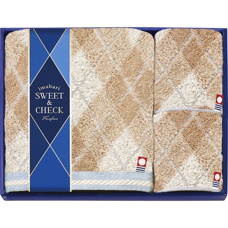 ブラウンのアーガイルチェックに水色の差し色がおしゃれな今治製のタオルです。細かなおしゃれさが光る甘い雰囲気のタオルです。
